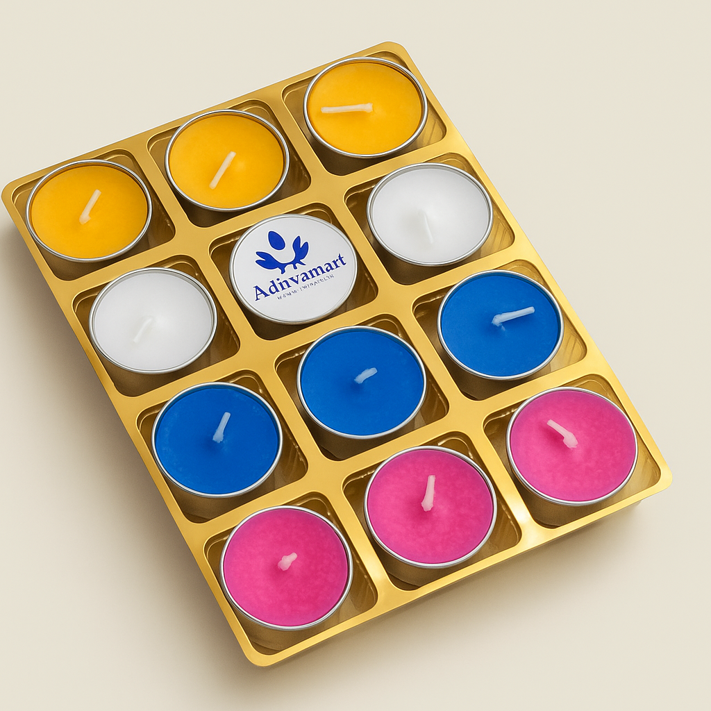 Tealight Soy Wax Candle Set – A beautifully crafted set of eco-friendly tealight candles made from 100% natural soy wax. These candles burn cleanly with minimal smoke, offering a longer-lasting flame compared to paraffin. Perfect for home décor, aromatherapy, festive celebrations, or creating a cozy ambiance.